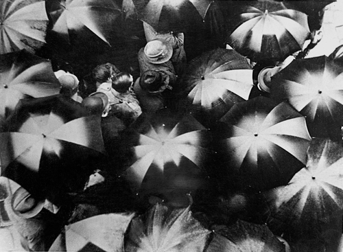 The screenings were bookended by two films that have much in common: Joris Ivens’s Rain (1929) and Alexandr Hackenschmied (Hammid)’s Aimless Walk (1930). They are part of a rich web of city symphony films and can be profitably connected with Jay Leyda’s A Bronx Morning (1930/1) to constitute a triology. (Since Leyda was an American, we didn’t show his film but there is a close connection.) All inevitably reacted to Walter Ruttman’s Berlin: Symphony of a Great City (1927). Ivens apparently started work on Rain in 1927 and did not complete it until late 1929—perhaps under the pressure of Vertov’s Man with a Movie Camera (1929). In tts opening shots of roof-tops and a departing ocean liner, Rain seemed to gesture quietly towards another avant-garde city film––Charles Sheeler and Paul Strand’s Manhatta (1921). As a short, Manhatta provides the model for depicting a more geographically limited area of the city.[1] Its representations of New York hold in tension the relationship between the metropolis and nature, between the large-scale city and individual people. These binaries—like the tension between movement and stasis in the film––are purposefully unresolved.