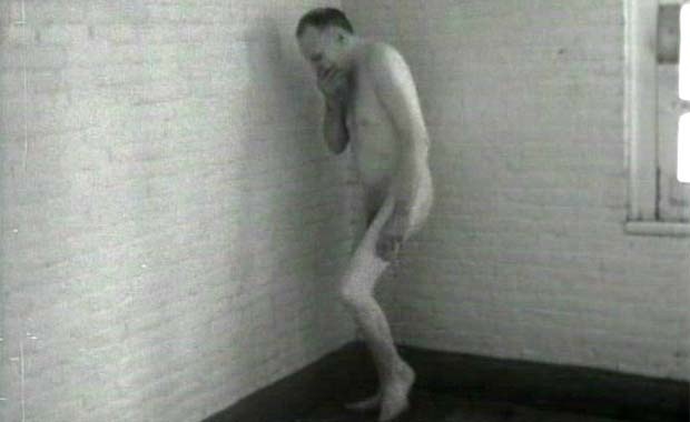 First. Because the film could only be shown under restricted circumstances for many years, I had always seen the film in a classroom or at least academic context ( like many other students in Film Studies). This meant having a range of nontheatrical viewing experiences as a norm. In contrast, the IFC showed a brand new print, and its projection was first rate. In short, it was a theatrical experience–cinema and, of course, a cinefilic experience. So the narrative and performative aspects of the film, as well as the absurdist and surreal sensibility, came out quite strongly. I suddenly felt that the early battle around censorship of Titicut Follies and the instrumental assumption that the film’s purpose was that of social reform have produced a particular set of somewhat limited analyses of the film. Although Wiseman’s discussions of Titicut Follies generally reinforces this view, his picture has quite a bit in common with Shirley Clarke’s The Connection (1961). And Wiseman had, of course, produced Clarke’s feature The Cool World (1964). Some of his scenes shot in the prison yard reminded me of the opening scenes of The Cabinet of Dr. Caligari!