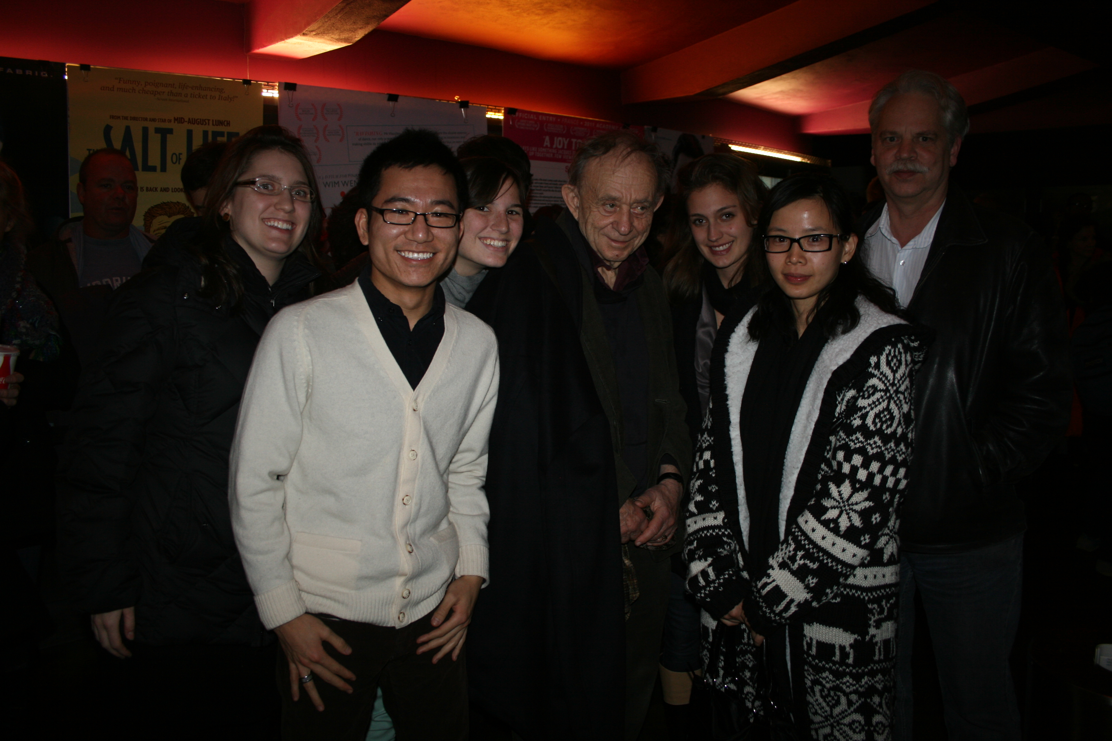 Normally I run into a number of documentary filmmakers at these STF events, but I suspect that many of them were waiting to go to the opening of Crazy Horse, which was opening at Film Forum the following evening. The exception was Susan Meiselas, whom I got to know a little through Julia Preston and Richard Rogers. By total chance I sat down right in front of her. It turns out that, among other things, she was an assistant editor on Wiseman’s Basic Training. When I was trying to get a group photo of my students with Wiseman and looking for someone to snap the picture–Susan was standing right there.