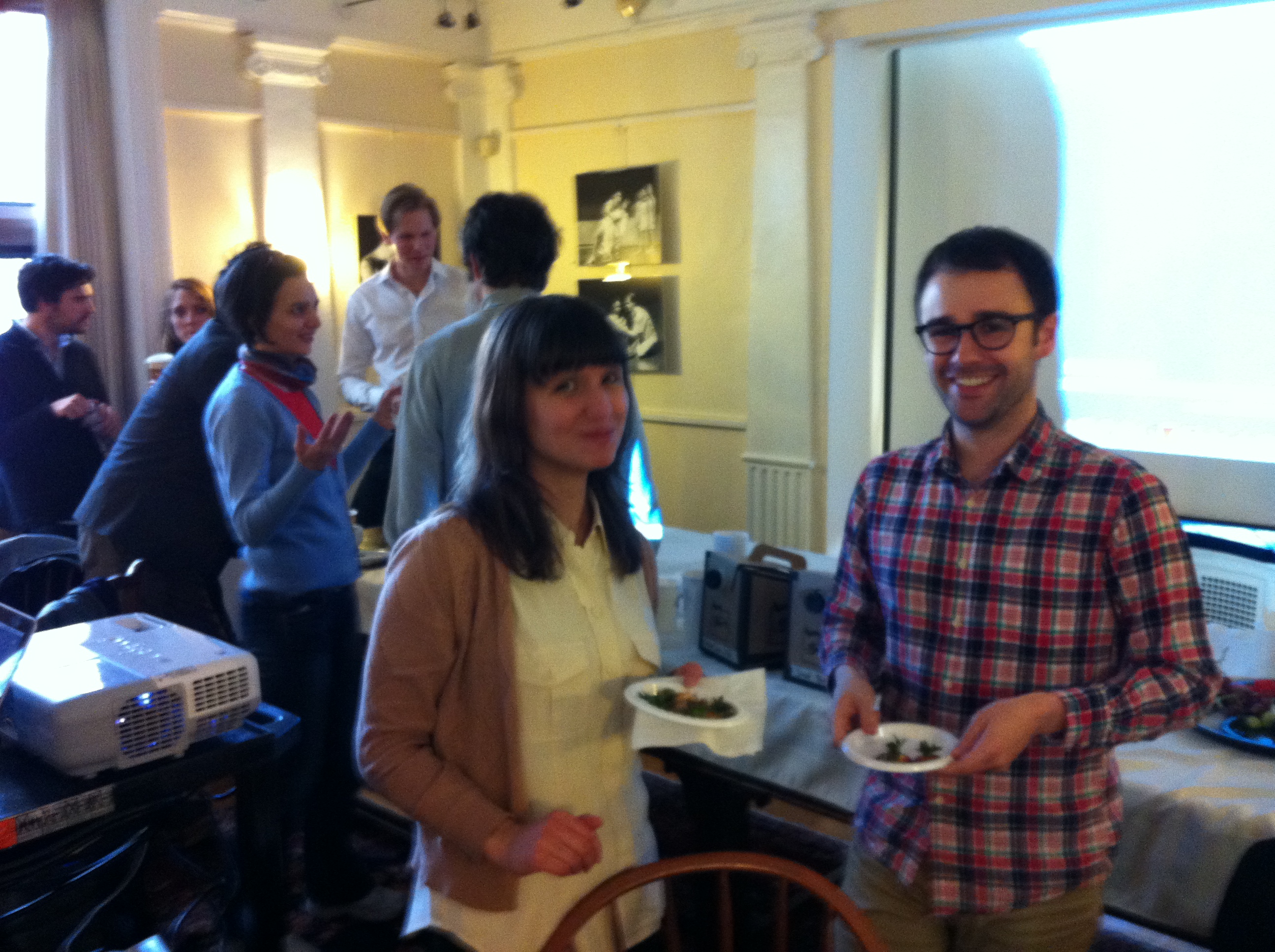 The symposium was embedded within a reception––coffee before the presentations, wine afterwards (well that was the idea, anyway).